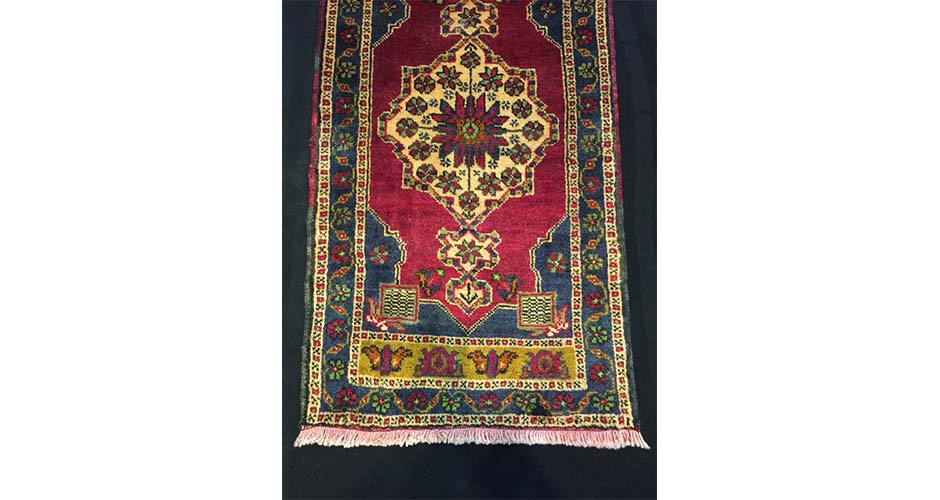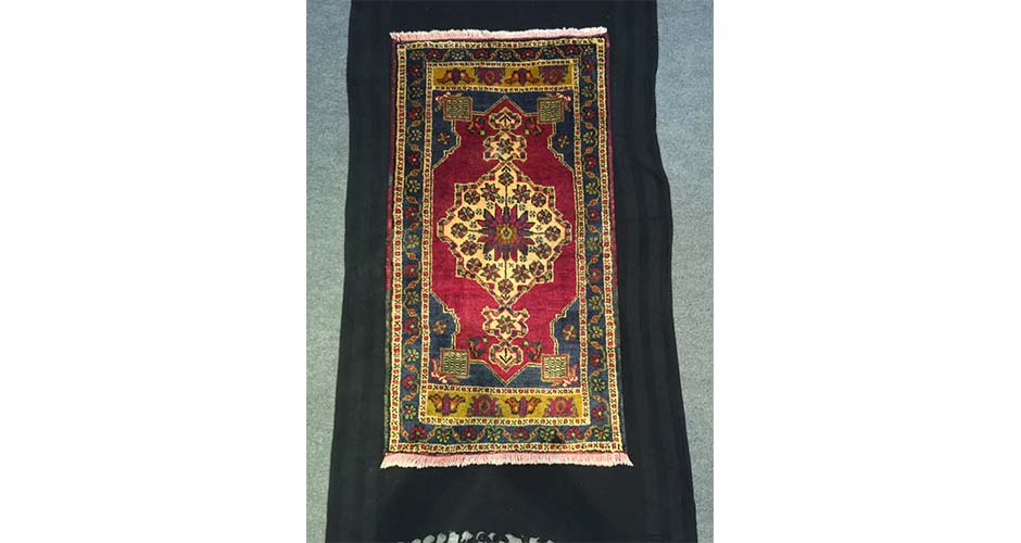 Hand made unique small carpet from central part of Turkey , made of 100% pure wool , Hand double knot , Estimated age 40 years old , Tribal and one of a kind hand made carpet , Size: 3’10” X 2′ 1″ ( 116 x 064 meter )