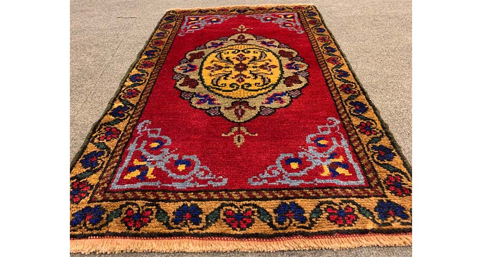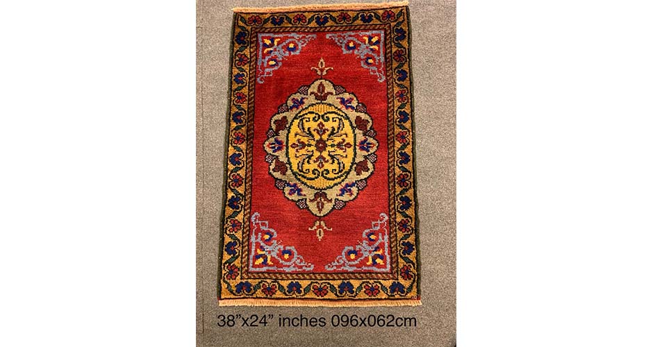 Old Hand made Konya (Central part of Turkey) wool Turkish Vintage Rug 3’2”x 2’1”Feet ( 096x062cm ) 38”x24” inches